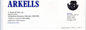 Founded 1843 by John Arkell at Lower Stratton. The present brewery built in 1861. Registered December 1927. Still brewing independently.