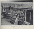 The bottling hall was a fairly small affair but with some equally interesting equipment. There was a Dawson washer, hand loaded, which could handle 80 dozen per hour. A Pontiflex chiller was used to bring the beer down to 32 degrees Fahrenheit and it then passed through a Carlson Ford filter to a Pontiflex 12 head filler and crown corker. Then the bottles passed to a Brigg's vapour pasteuriser.