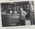 The equipment used was also of "mature" years. The malt mill had a roller/friction drive powered by steam, as was the elevator system for the malt. The 12 quarter malt tun was dated 1876 and was copper lined. The raking mechanism is also steam powered. The spent grain was usefully recycled via the local farmers.